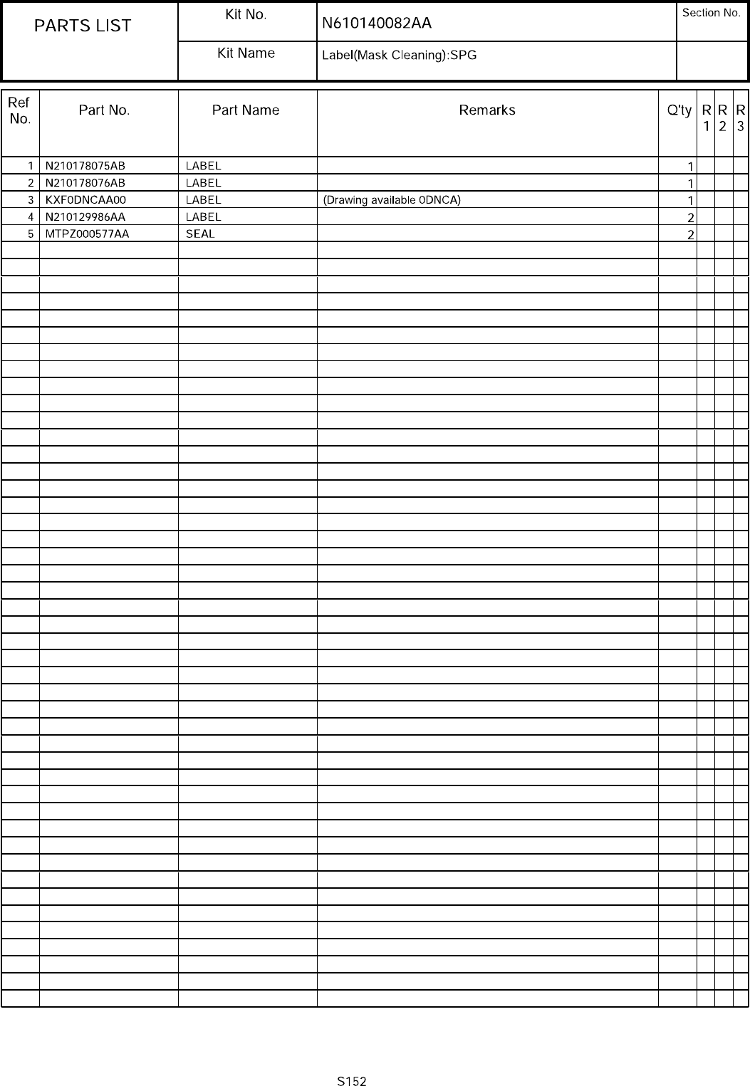 32 銘板・警告ラベル(マスククリーニング):SPG パーツレイアウト キット品番 キット名称 セクションNo. - - ( KN610 14008 2AA-03 )