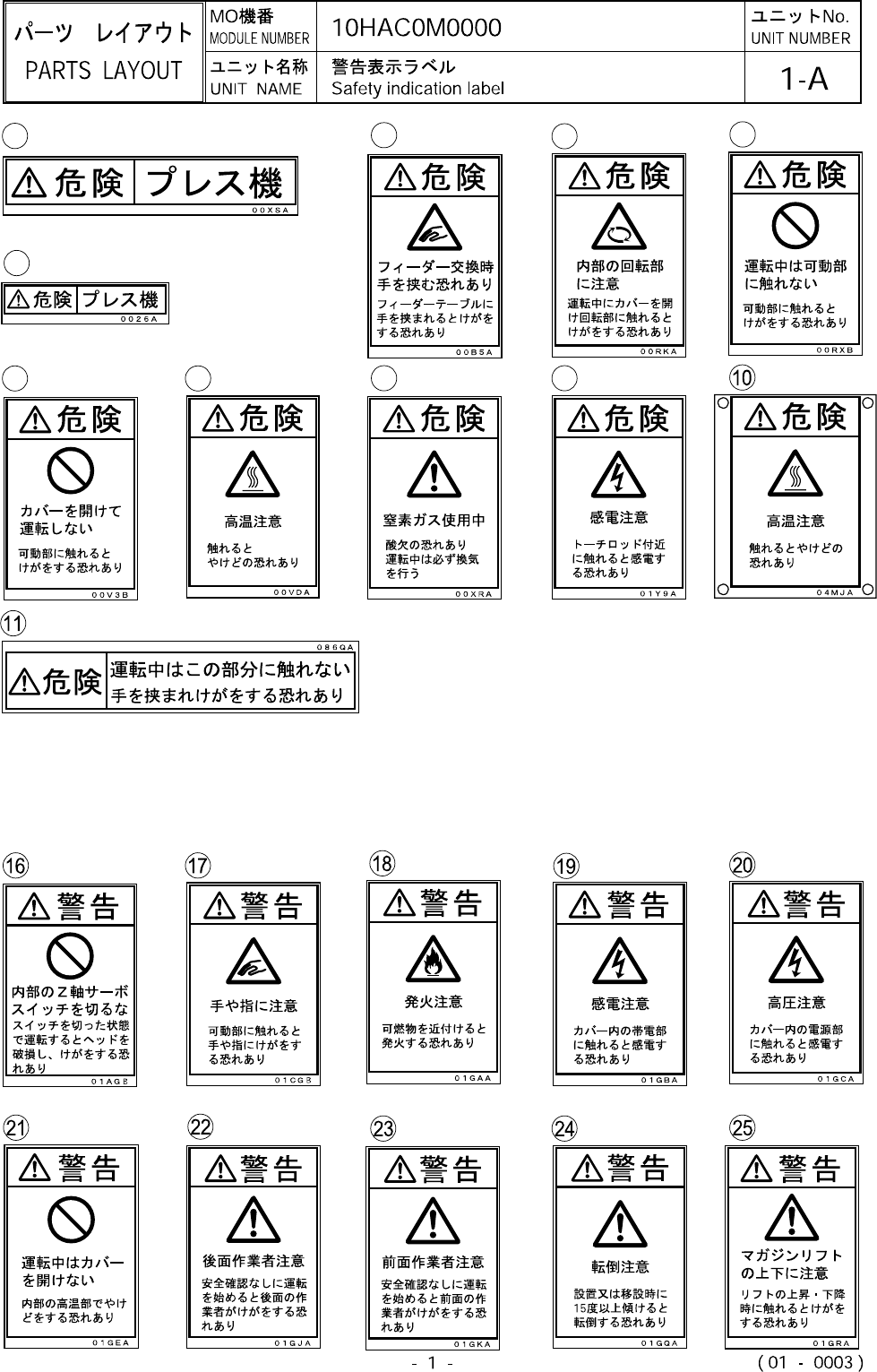 Safety Indication L abel 警告表示ラベル