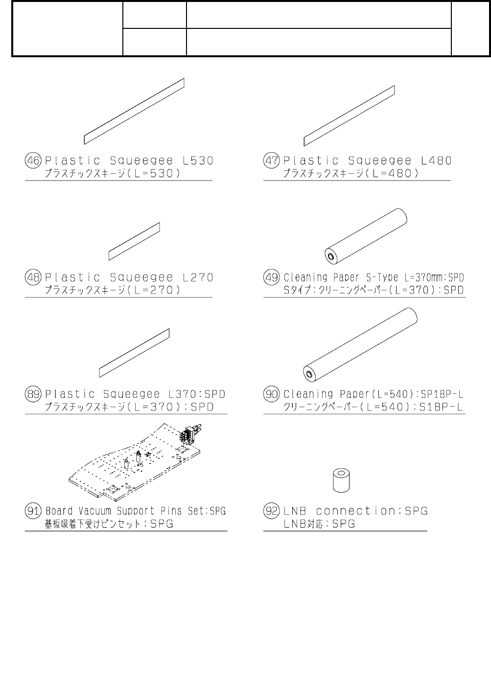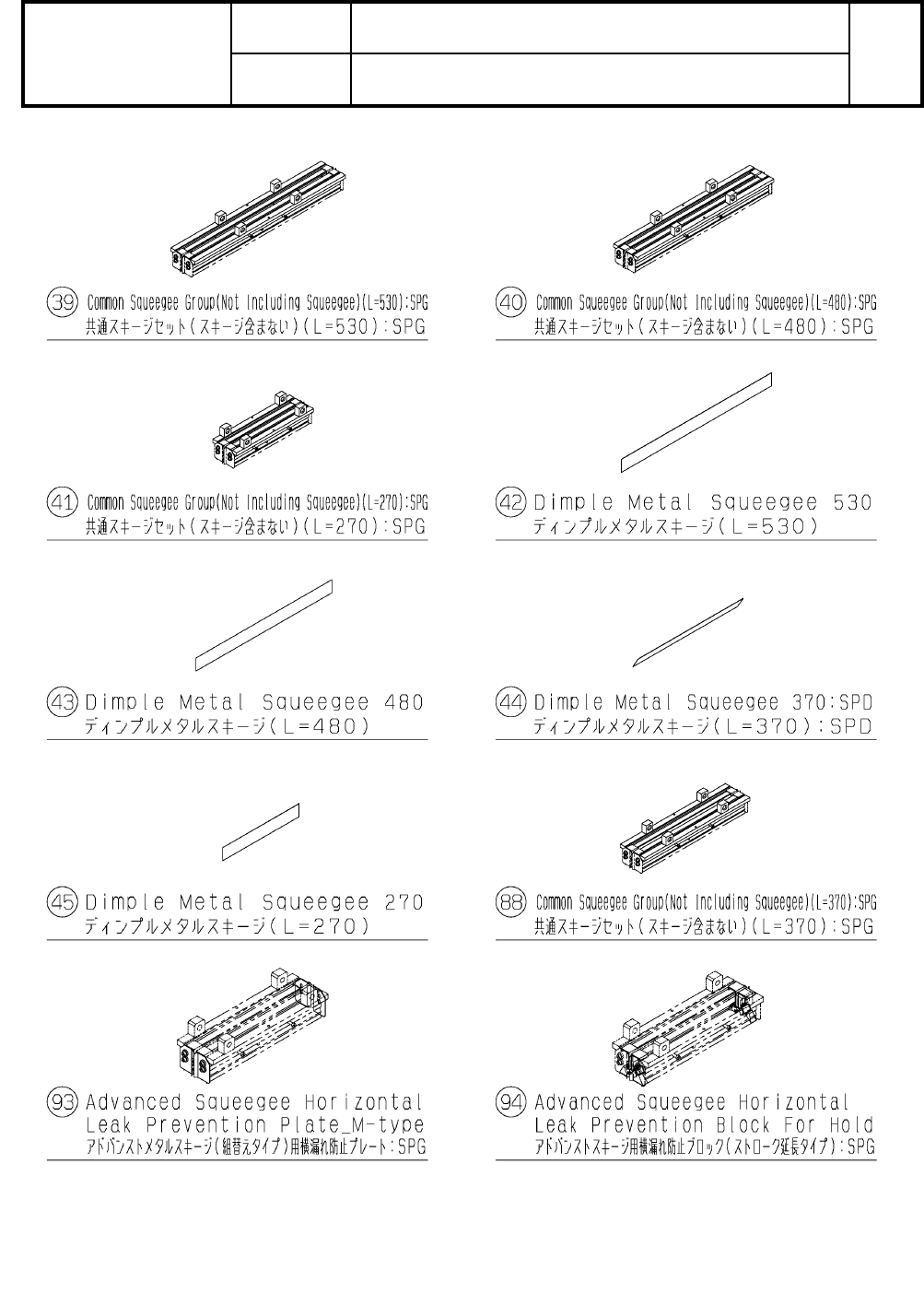 Kit Name Rank Q't y 番号 Part No. キット名 品番 数量 ランク 頁 Page No. 11 SPG:スクリーン印刷機 SPG:Screen Pr inter キットリスト 製品品番 Model No. 製品名称 Model Name NM-EJP6A KIT LI ST 1 39 MTKA000444AA Common Squeeg ee Grou p(Not I ncludi ng Sque…