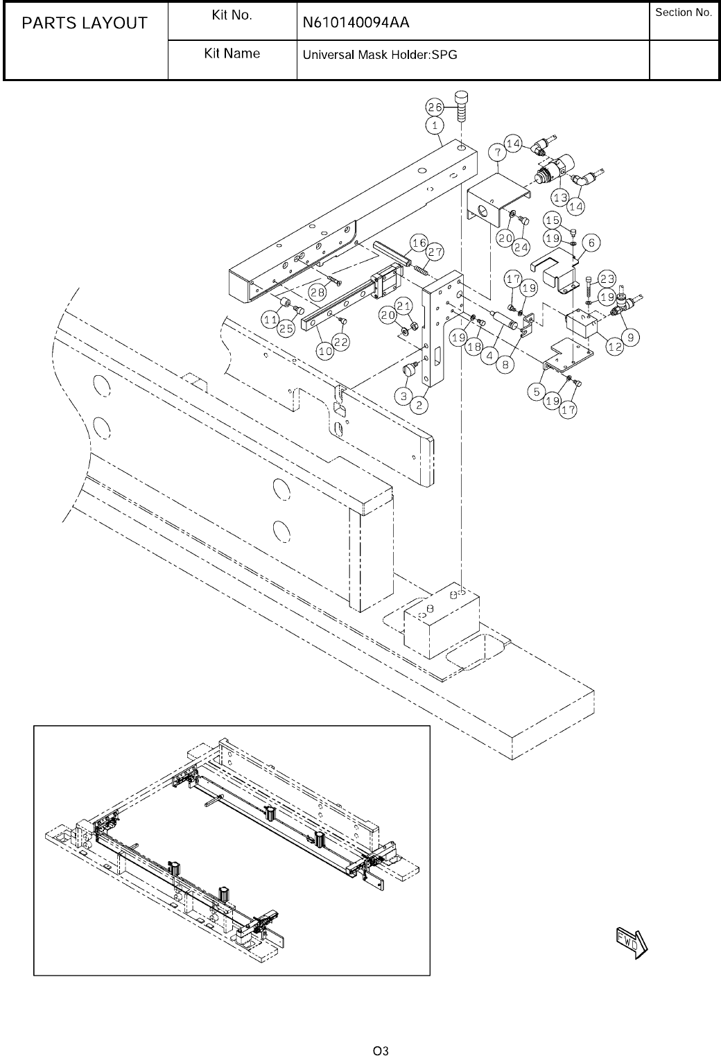 1-A ユニバーサルマスクホルダ:SPG イラスト No. 品名 品番 数量 パーツリスト キット品番 キット名称 備考 セクションNo. - - ( KN610 140094AA -12-1 )