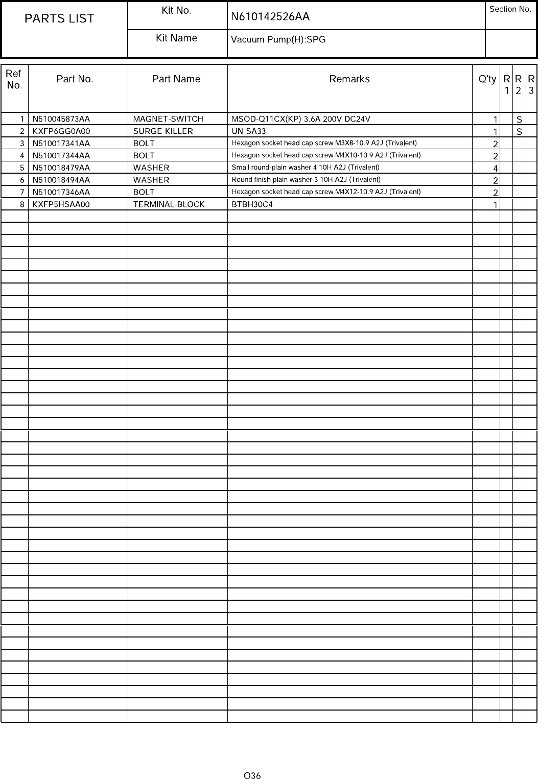 15 真空ポンプ制御:SPG パーツレイアウト キット品番 キット名称 セクションNo. - - ( KN610 14252 6AA-02 )