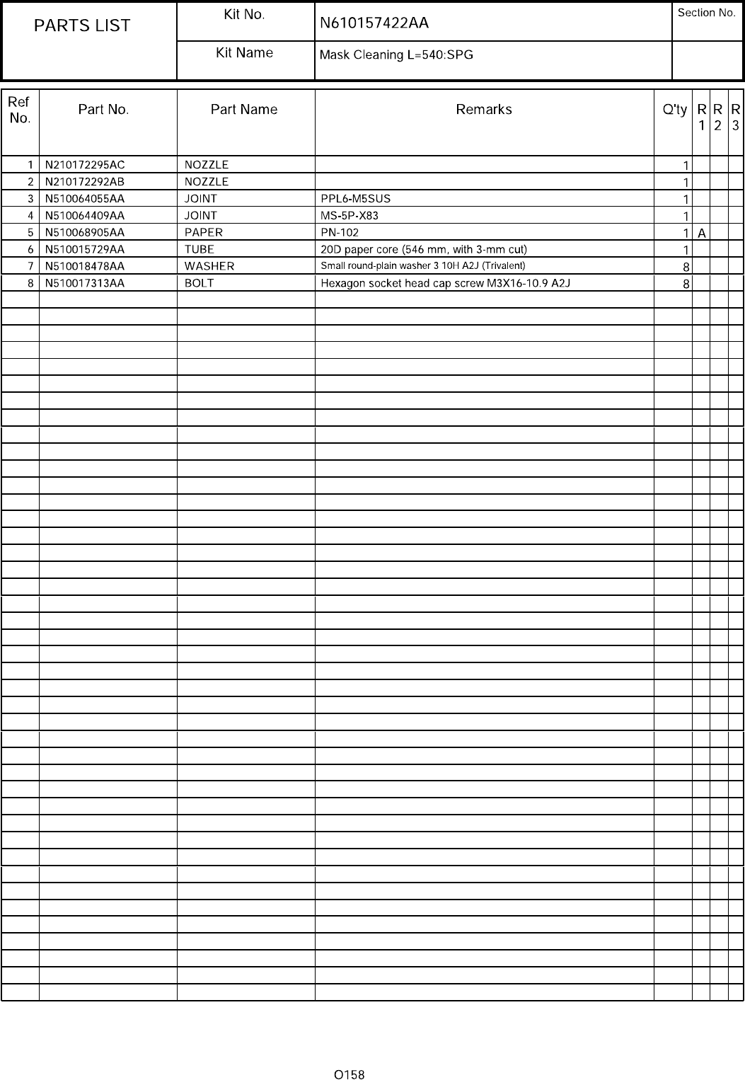 73 マスククリーニングL=370 対応:SPG パーツレイアウト キット品番 キット名称 セクションNo. - - ( KN610 14011 0AA-03 )
