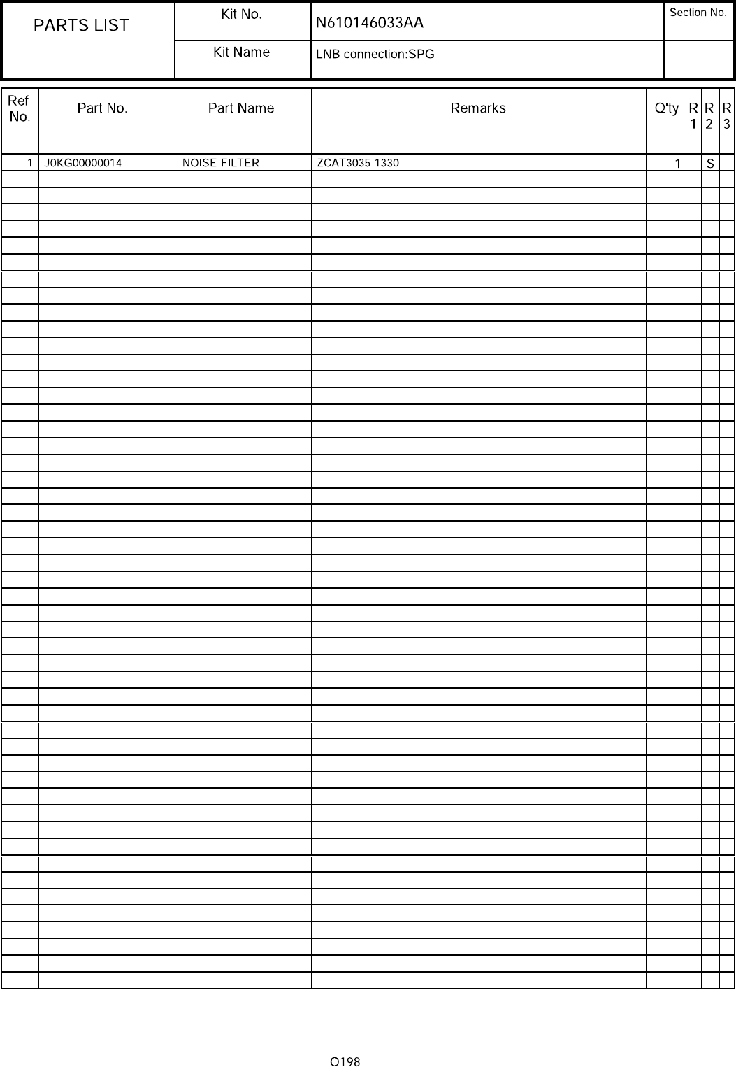 92 LNB対応:SPG パーツレイアウト キット品番 キット名称 セクションNo. - - ( KN610 14603 3AA-02 )