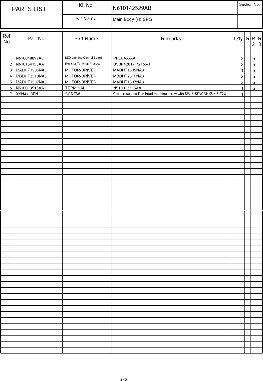 7 受電部制御:SPG パーツレイアウト キット品番 キット名称 セクションNo. - - ( KN610 14253 1AB-00A )