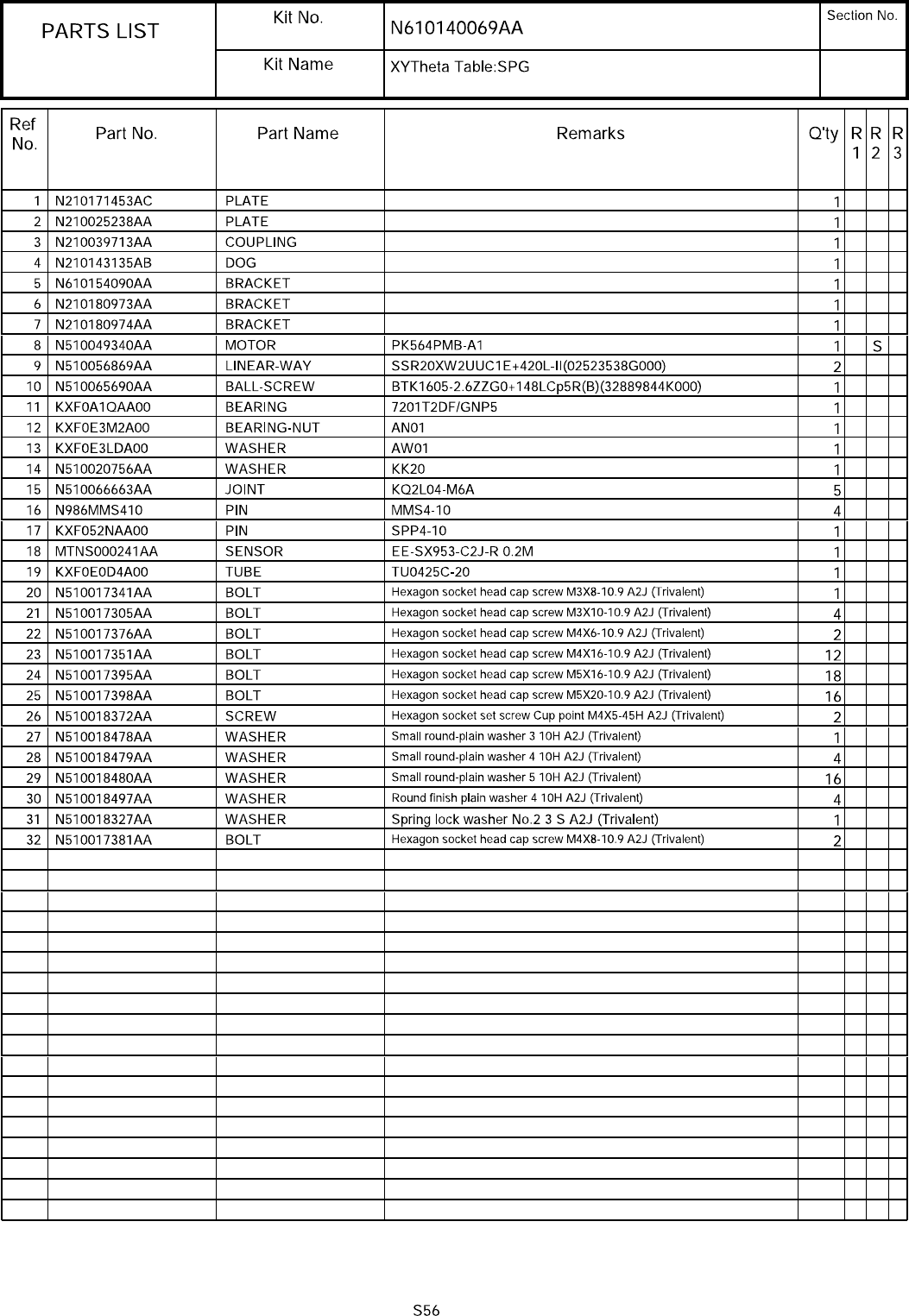 12-B XYθテーブル:SPG パーツレイアウト キット品番 キット名称 セクションNo. - - ( KN610 14006 9AA-09-2 )