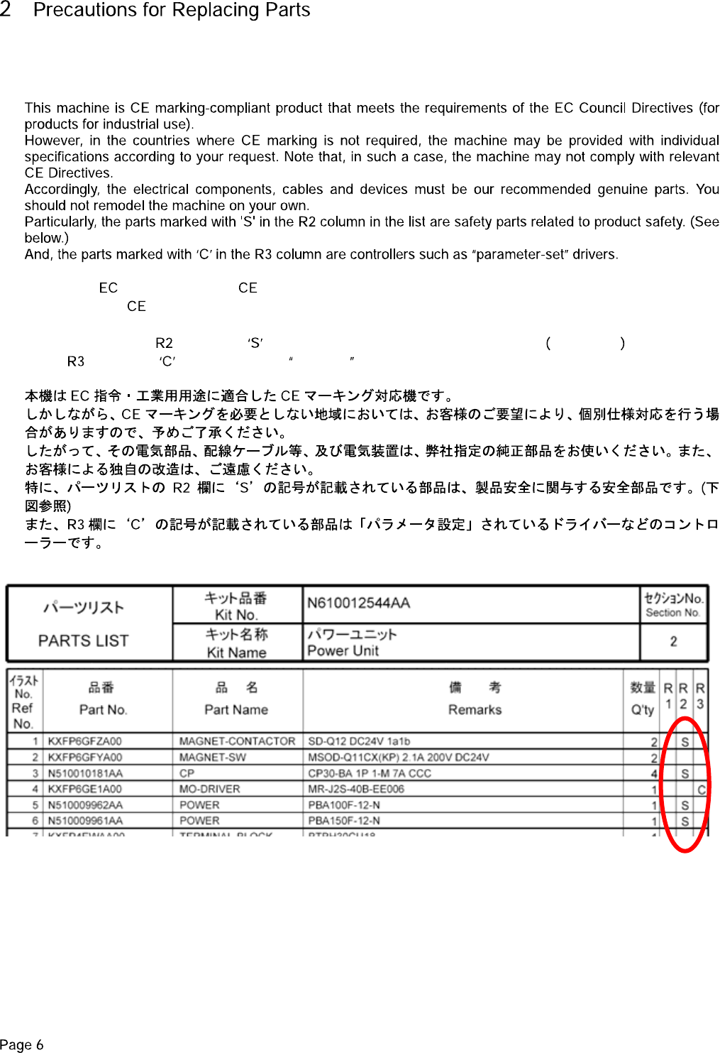 尤其是零部件目录的 栏目中标有 符号的部件,是与产品安全相关的安全部件。 请参照下图
