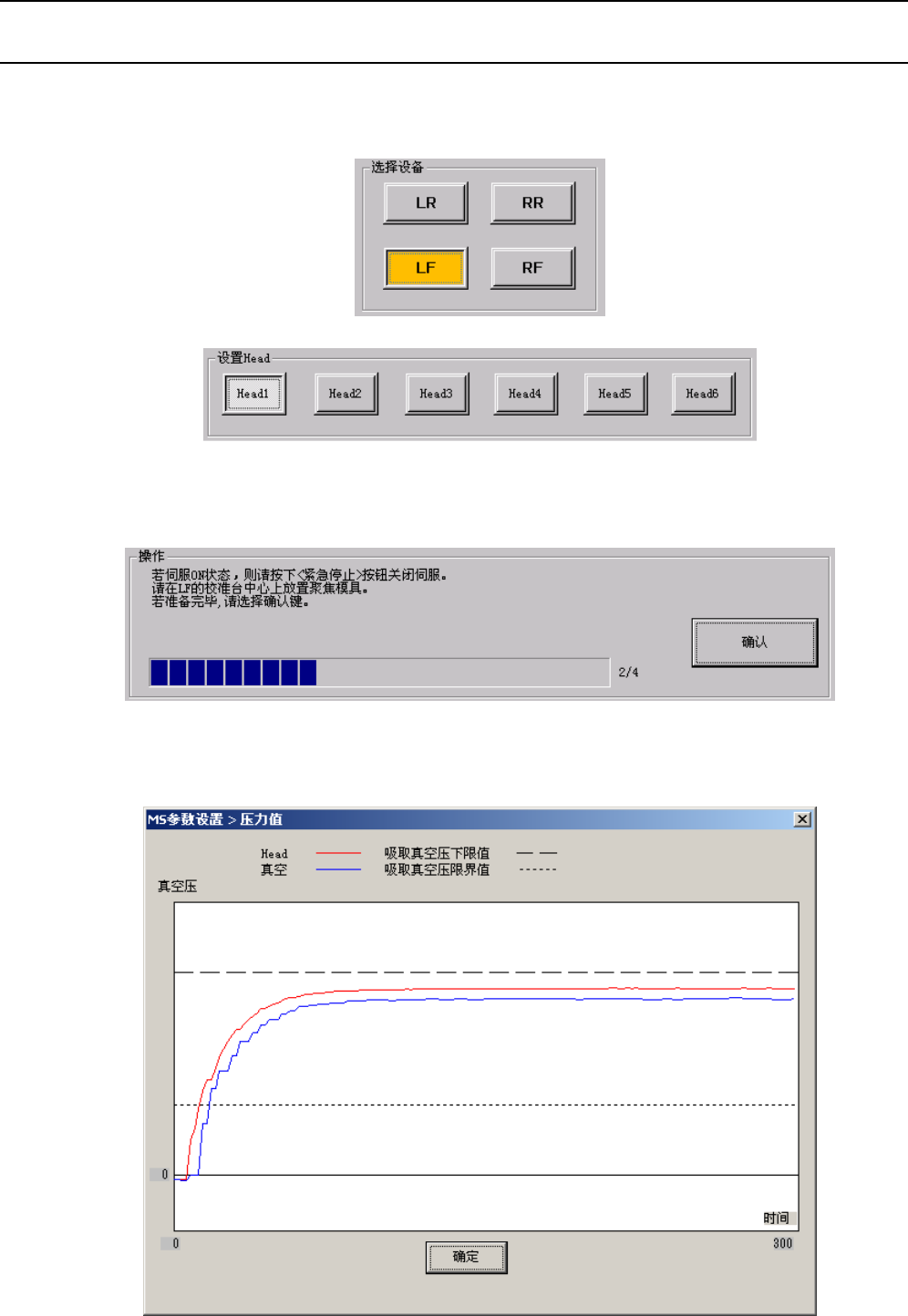 ③ 要是Head上装有吸嘴,则卸下吸嘴,为了测定“到达真空状况”按下“操作”框内的“确认”按钮。