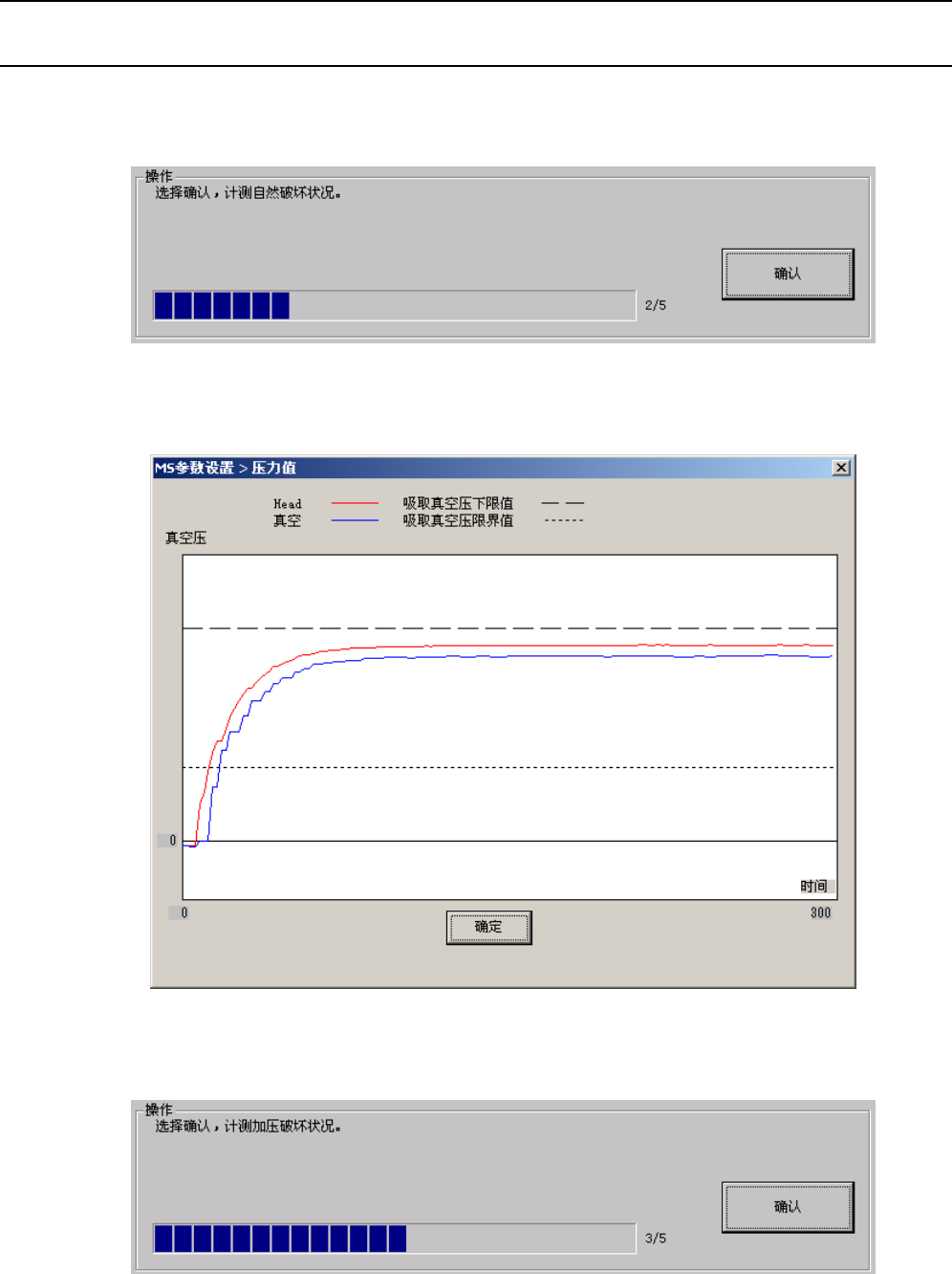 ⑤ “到达真空状况”的测定结束后,按下“确认”按钮,测定“自然破坏状况”。