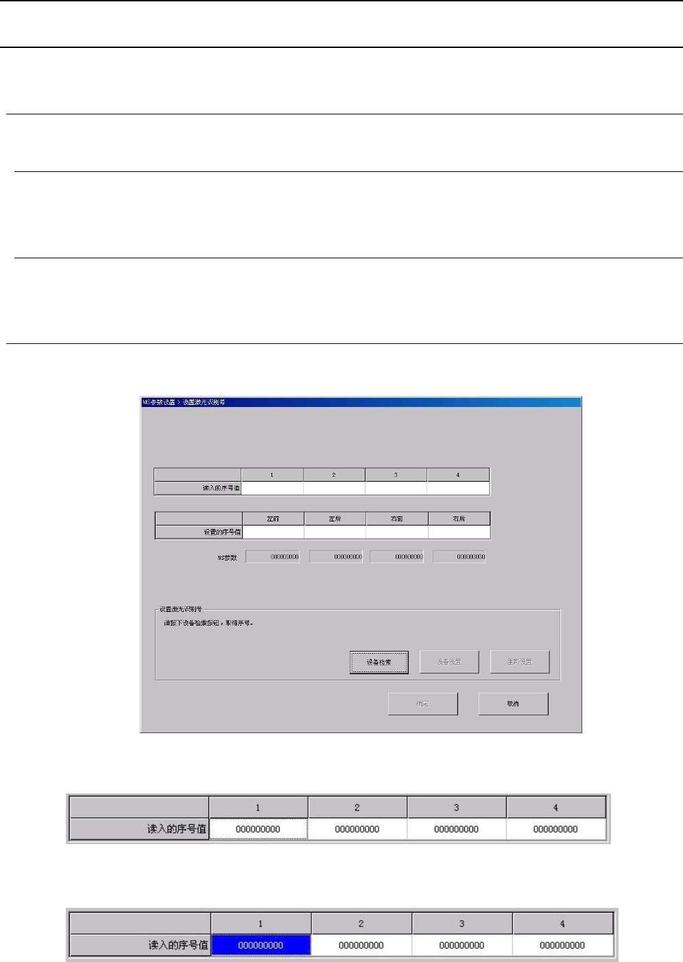 ① 点击“设备检索”按钮,会显示机器中所组装的激光单元的序号。