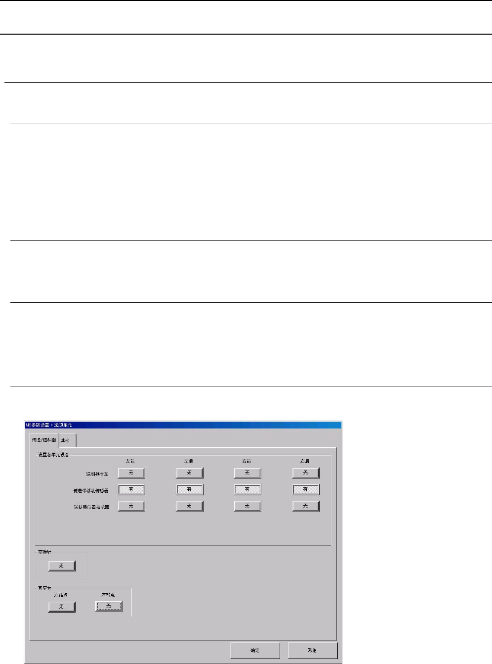 另外,“传送/送料器”、“其他”的对话框请参照下一项目。