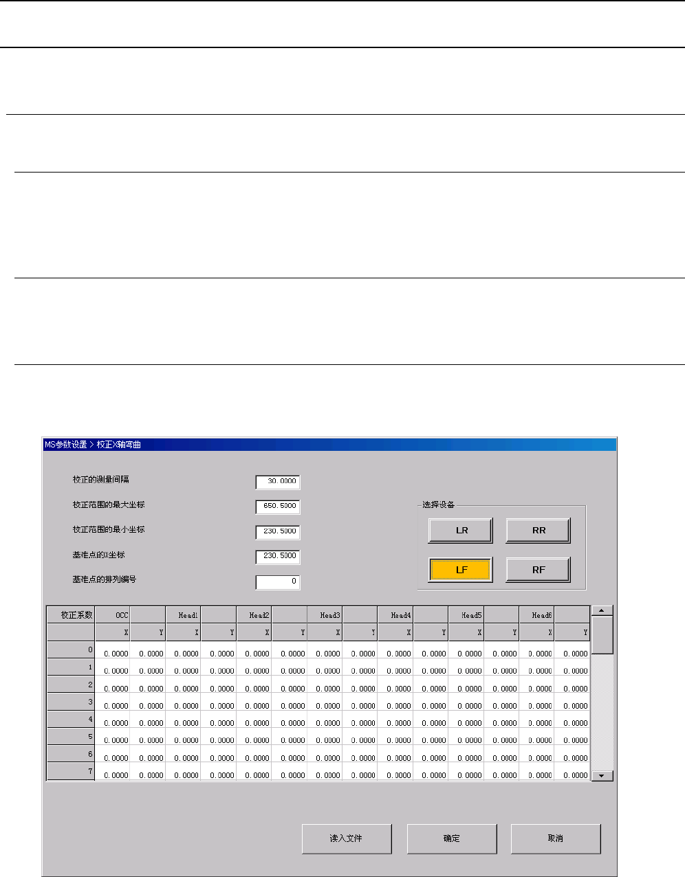 从菜单中选择“初始设置(I)”-“校正X轴弯曲(A)”,会显示如下对话框。