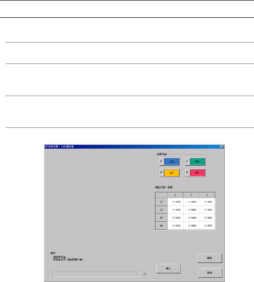Rev1.00 MS 参数 3-24 3-8 HMS 偏移量 3-8-1 功能 通过 OCC 取得 HMS 的装配位置、装配高度。 3-8-2 使用模具 本项目中不使用模具。 3-8-3 操作 ① 从菜单中选择 “ 偏移量设置( O ) ” - “HMS 偏移量( H ) ” ,会显示以下对话框。