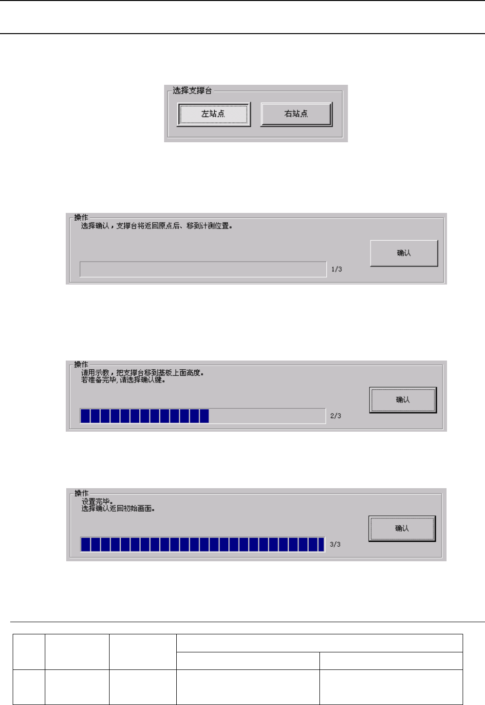 ③ 选择好要调整的支撑台后,请点击“操作”框内的“确认”按钮。“确认”按钮被按下后,支撑台