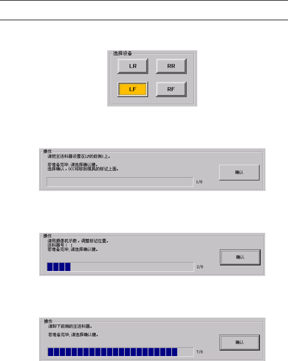 ③ 选择设备后,将主送料器设置到操作说明框中所显示的位置。准备完毕后按“确认”按钮,使