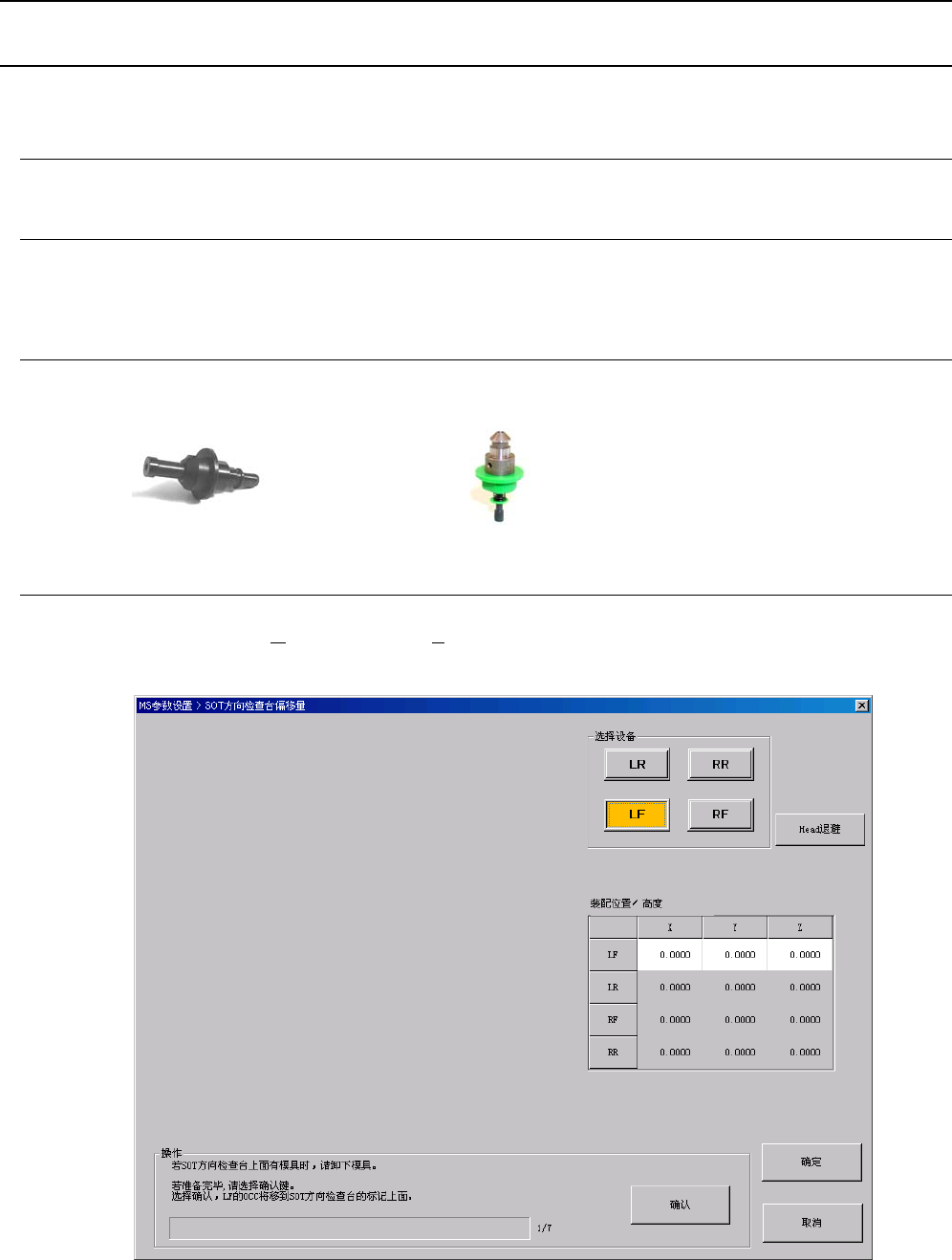 Rev1.00 MS 参数 3-53 ⑧ 如测量位置 有偏移, 利用示教调整 好位置, 按下 “ 确认 ” 按钮。 “ 确认 ” 按钮被按下后, 进行 CVS 的高度测量。 • 自动计测内容 ① 启动 Head 的真空,读入真空值。此时,若真空值低于 − 80KPa ,即作为出错。 ② 下降 Z 轴,使与 CVS 装置接触。 ③ 进一步下降 Z 轴,测量真空值低于 − 80KPa 的位置。 ④ 根据第 ③ 步计测到的位置和用于计测的吸嘴…