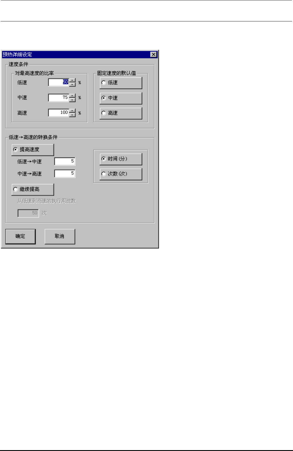 起动: [其他]按键→[设置项目]标签→[预热详细设定]按键