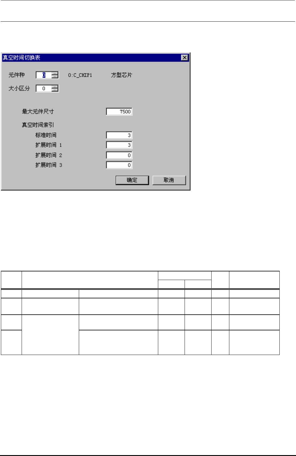 Rev1.0 机器控制参数 4-79 4.5.12 真空(真空校准) 图 4.5-12 真空校准 (1) 设置画面的显示方法 菜 单 : [ 输入 ] → [ 其他 ] → [ 真空 ] → [ 真空校准 ] 起 动 : [ 其他 ] 按键 → [ 真空 ] 标签 → [ 真空校准 ] 按键 (2) 设置项目 输入范围 № 项目 最小值 最大值 单位 备考 1 吸取真空压下限值 0.1 kPa 初期值 : 相当于 -500mmHg 2 …