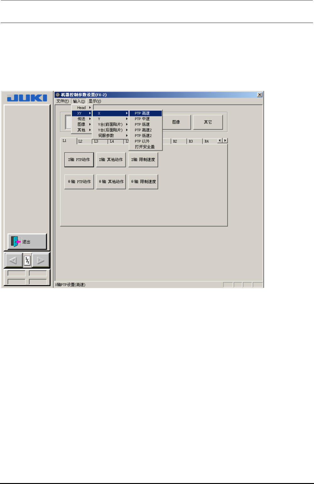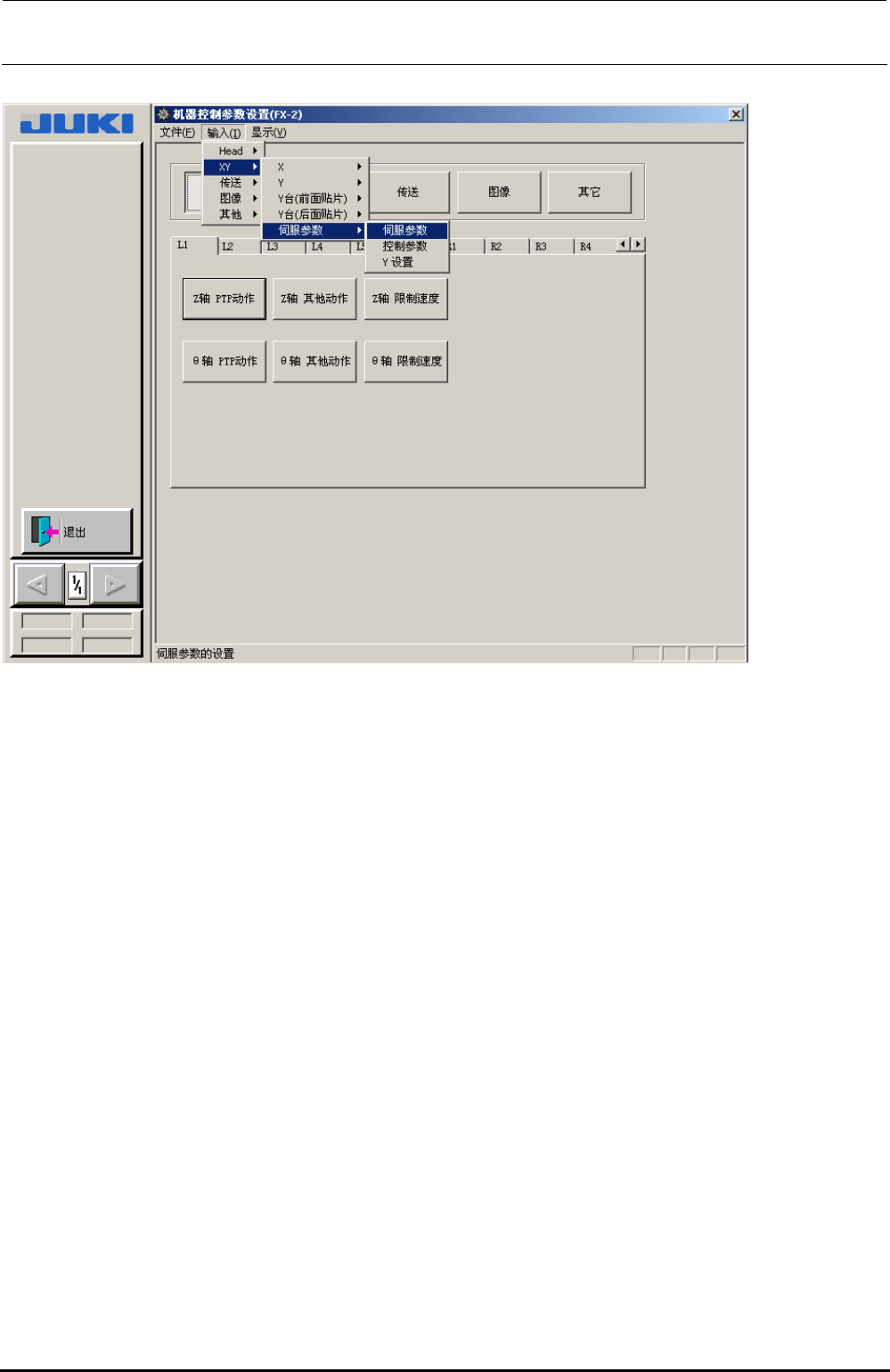 Rev1.0 机器控制参数 2-5 图 2.2-4 伺服参数菜单 (1)X 进行X轴的设置。 (a) 进行X轴的 PTP 动作 ( 高速 · 中速 · 低速 · 高速 2· 低速 2) 的轴控制参数设置。 (b) 进行X轴的 PTP 动作以 外的轴控制参数设置。 (c) 进行X轴的打开安全盖时的轴控制参数设置。 (2) Y 进行Y轴的设置。 (a) 进行Y轴的 PTP 动作 ( 高速 · 中速 · 低速 · 高速 2· 低速 2) 的轴…