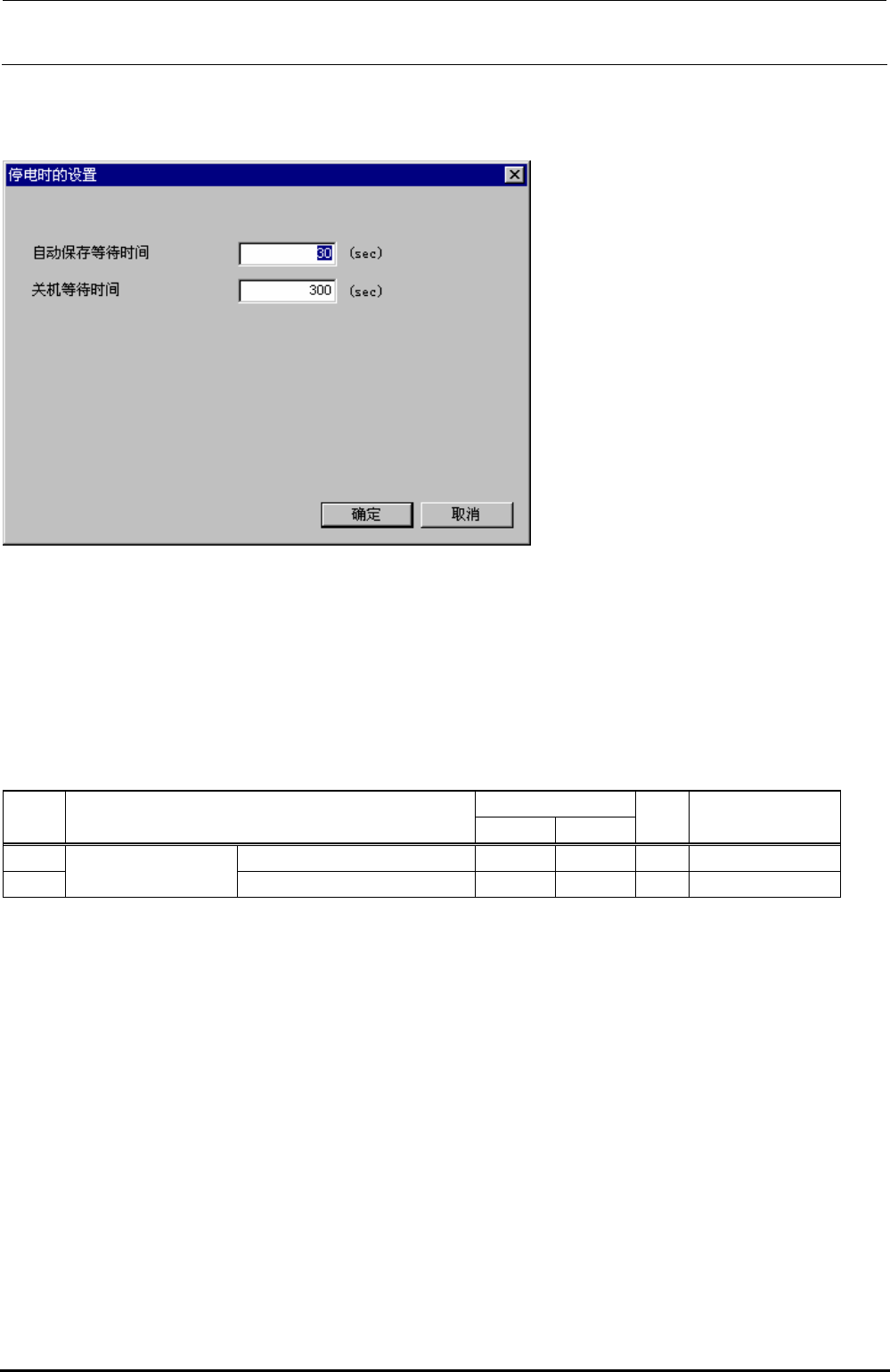 菜单: [输入]→[其他]→[其他]→[停电时的设置]