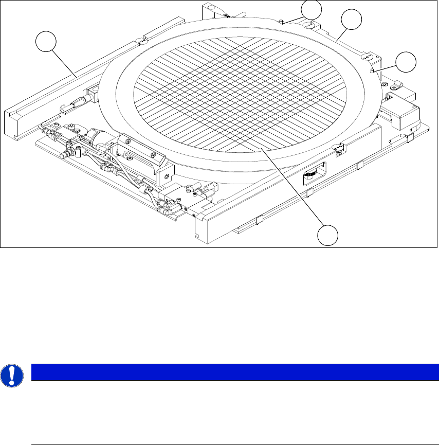 如果使用了 8" 晶圆支撑件,在连接晶圆锁定杆 (2)时请确保锁定杆的插销可以与