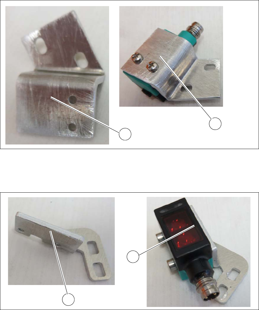 将两个传感器 (2) 安装在从 12" 改装套件中取出的装配支架 (1) 上。