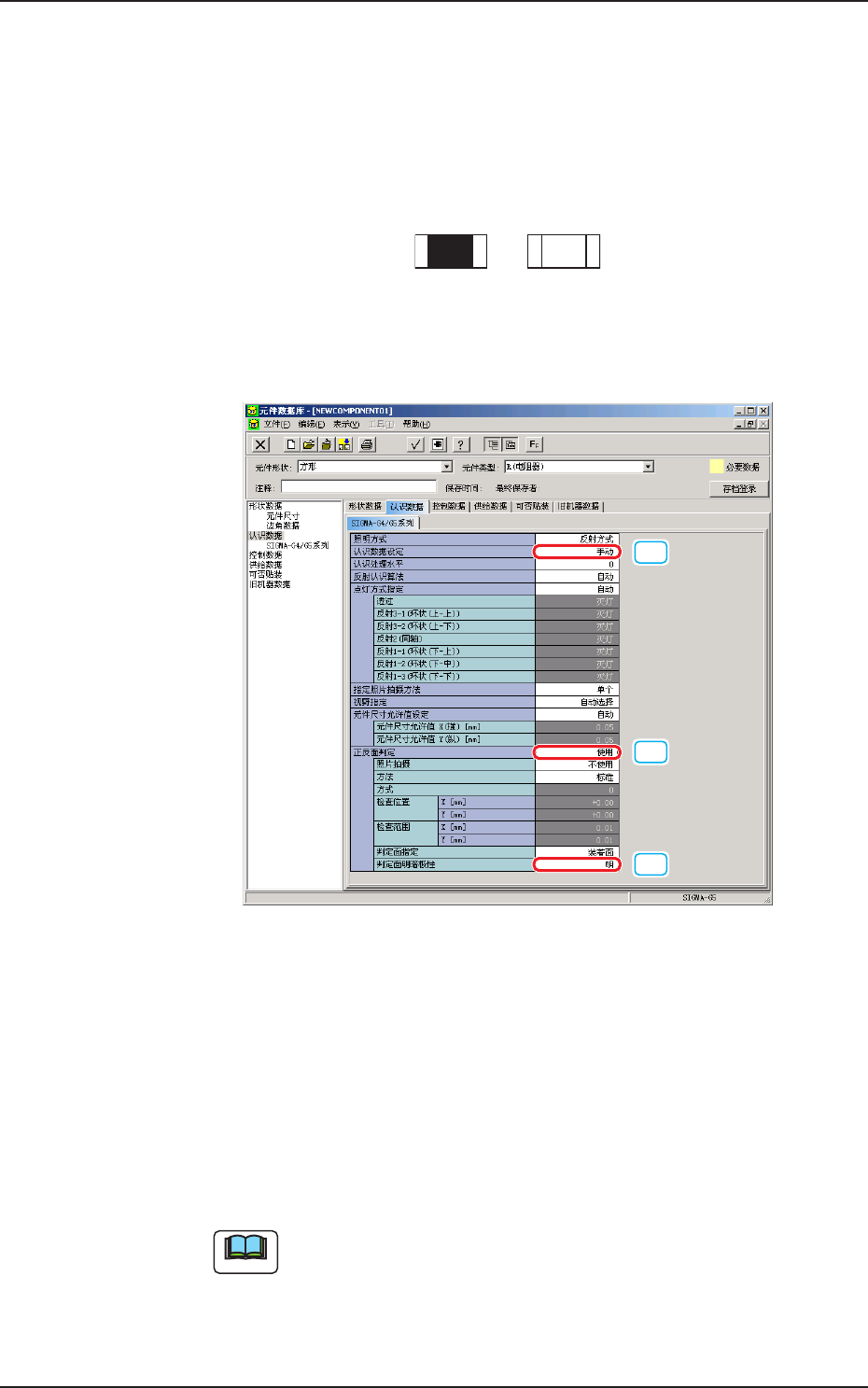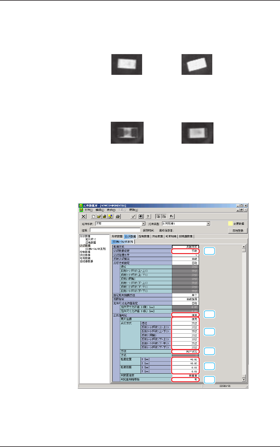使用电阻芯片等正反面鲜明的正反面判定功能时,设定如下 :