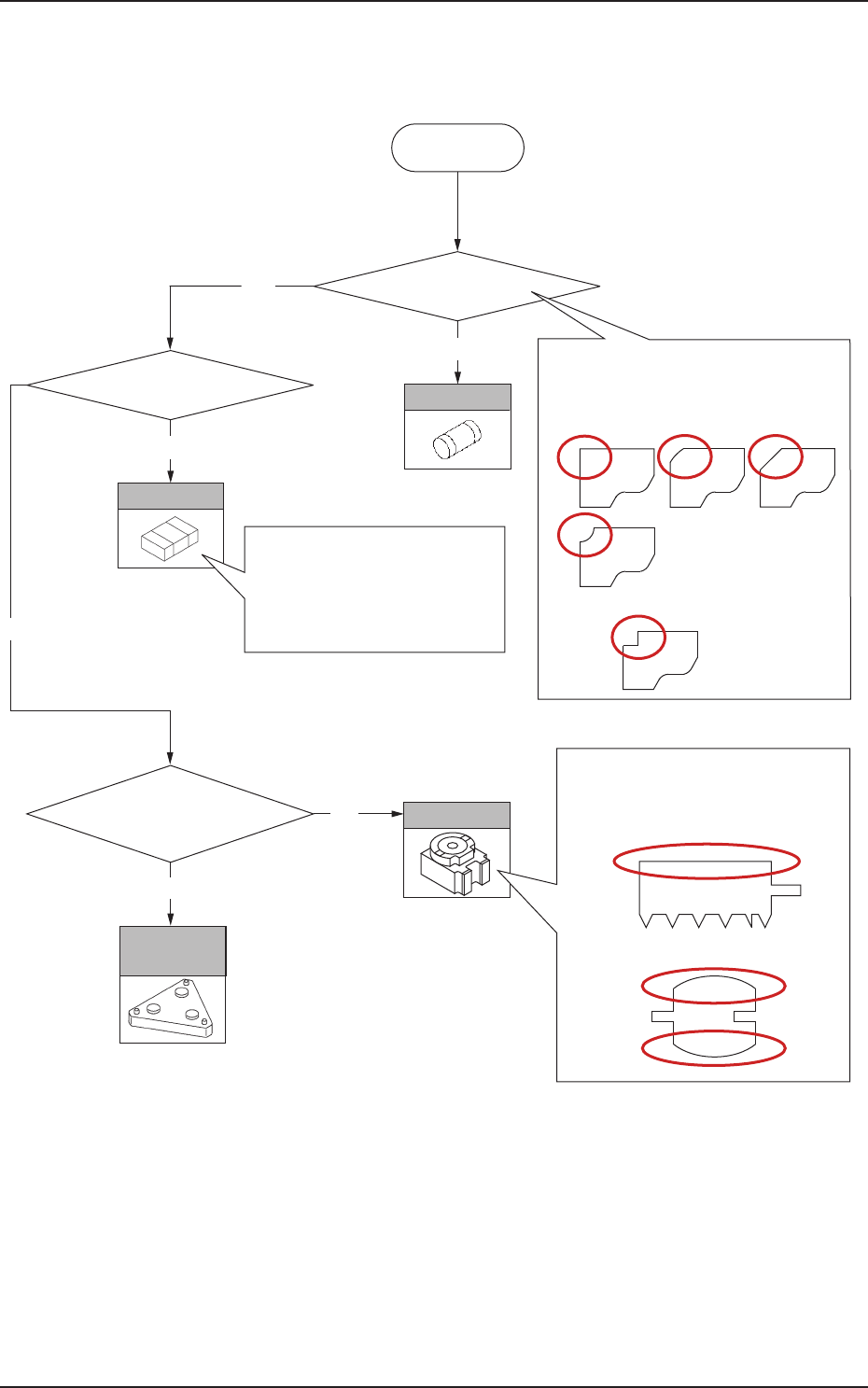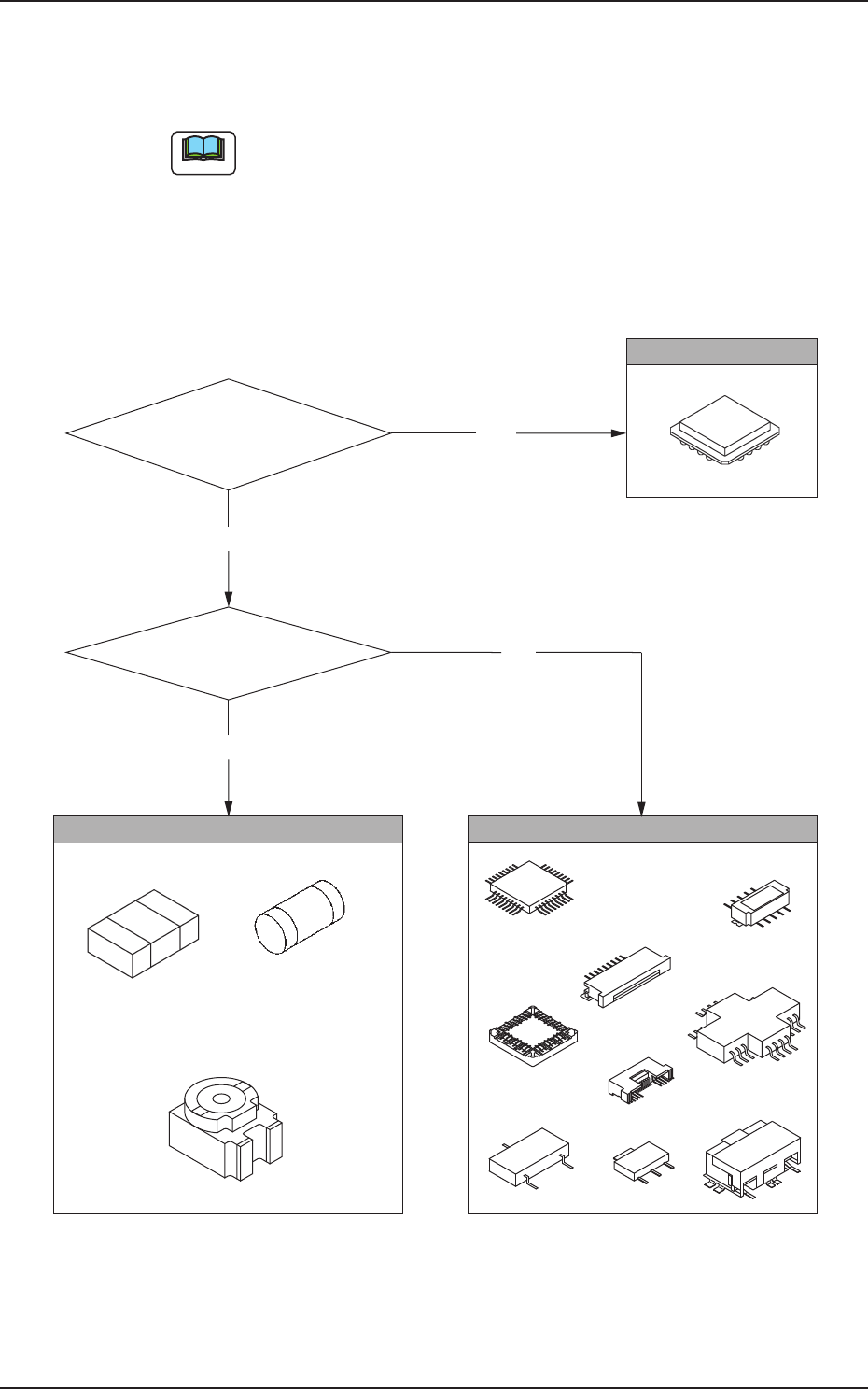 6OM-1752 4-3 2. 确认元件形状 为了从标准元件数据库中查找类似形状的元件而进行元件形状的确认。 Note 确认使用元件属于哪种元件形状。 新建时,如果属于特定元件形状,就易于创建数据。 2.1 确认步骤 (1) 确认元件上是否带引脚。 带引脚吗? 无引脚 带引脚 区域阵列 是 贴装面有栅格状排 列的圆形电极 ( 球 ) 吗? 是 否 否 (选项) F6D1 1305-001 2. 确认元件形状