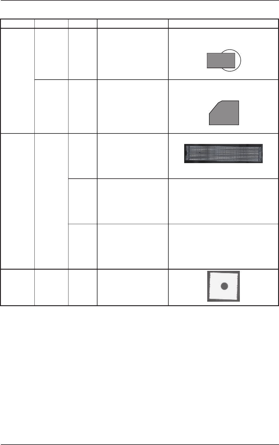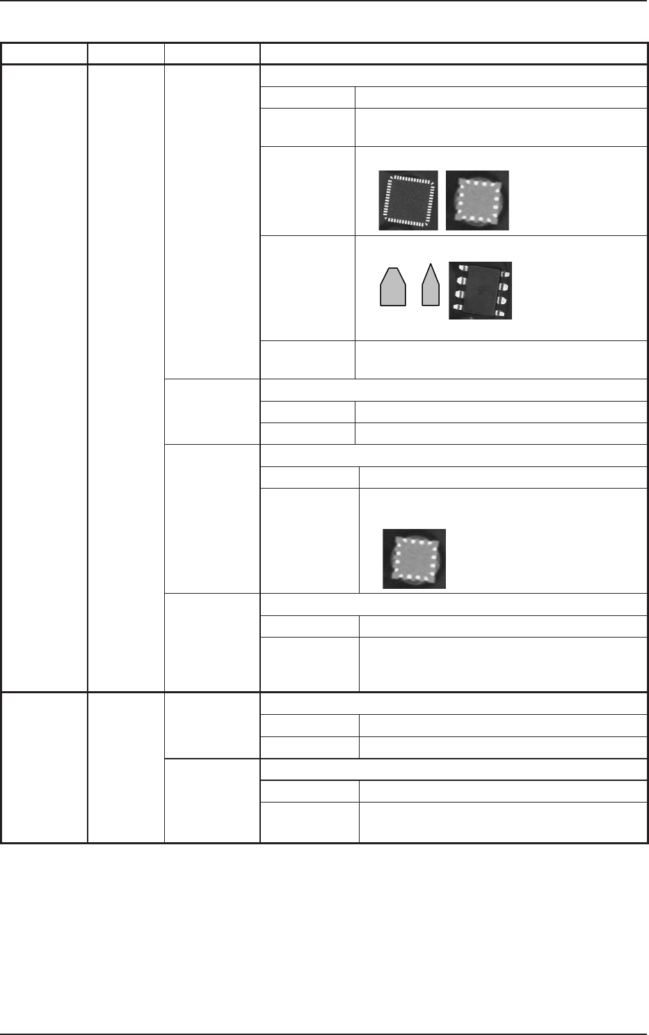 6OM-1752 2-74 1305-001 2.3 (C01) 认识 ( 识别 ) 数据 (c) “ 1 ” 以上识别处理水准的内容 元件形状 算法 处理水准 内 容 使用示例 无引脚 ( 圆筒 ) ( 方形 ) ( 异形 ) 边角 1 即使只识别连续的 2 边角, 也使用 2 边角进行定位。 在2 处边角部有吸嘴重叠的状态下也可 进行定位。 外形 ( 有角度 ) 1 不是元件的主轴角度,使 用边角或边缘进行角度补 正。 对外形形状非…