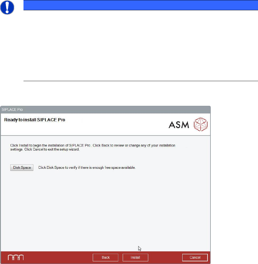 SIPLACE Pro is now ready to be installed. The following dialog is displayed.