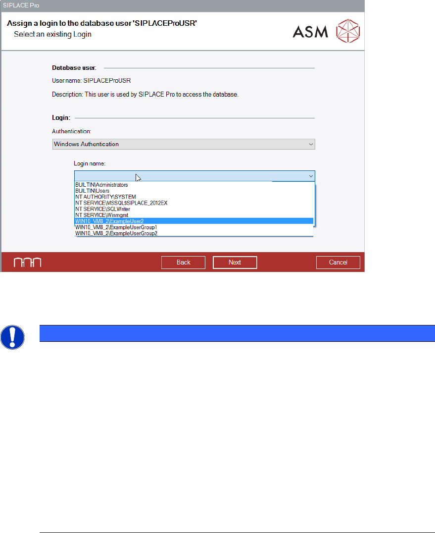 SIPLACE Pro 17.0 (R19-2) / Installation Manual 11/2019 Edition 32 Assigning an Existing SQL Server L ogin The SQL Server login already exi sts. The login password ha s to be confirmed or a new pass word created. Figure 6…