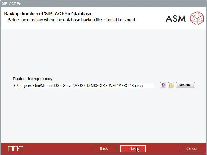 The following dialog is displayed in which you can select the backup directory for the SIPLACE Pro