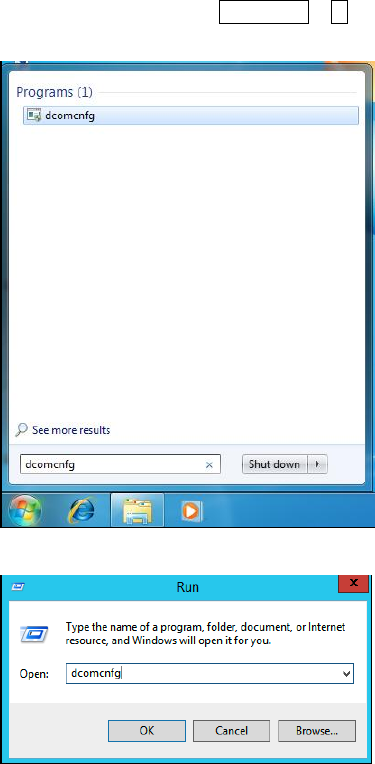 Figure 7-2: Opening DCom configuration tool using the Run window
