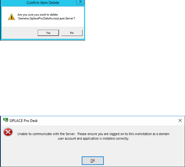 ► In the right part of the window, verify if the Siemens.SiplacePro.DataAccessLayer.Server