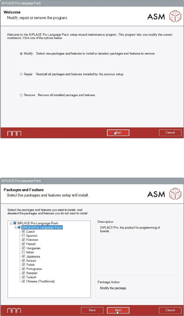 8.2 Modifying the SIPLACE Pro Language Pack Installation