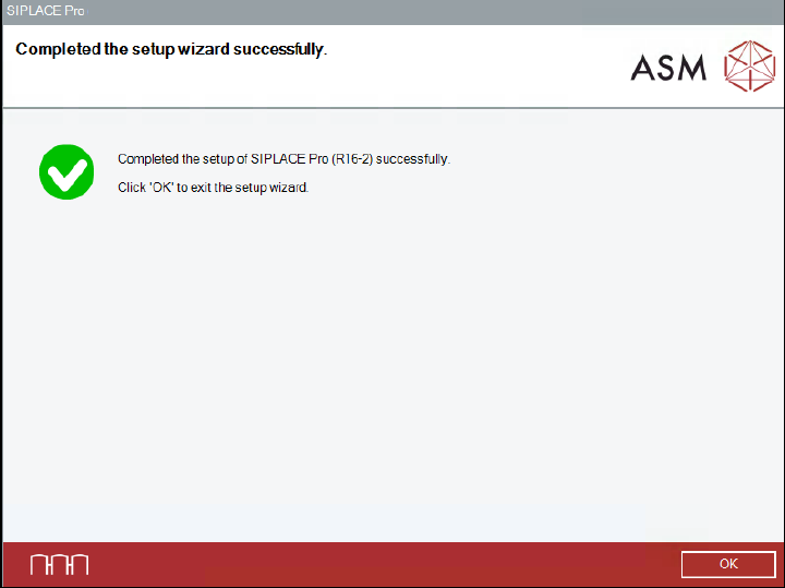 SIPLACE Pro 17.0 (R19-2) / Installation Manual 11/2019 Edition 66 After successful removal, the following dialog is displayed. Figure 9-8: Removing SIPLACE P ro completed ► Click the OK button to exit the setup wizard. T…