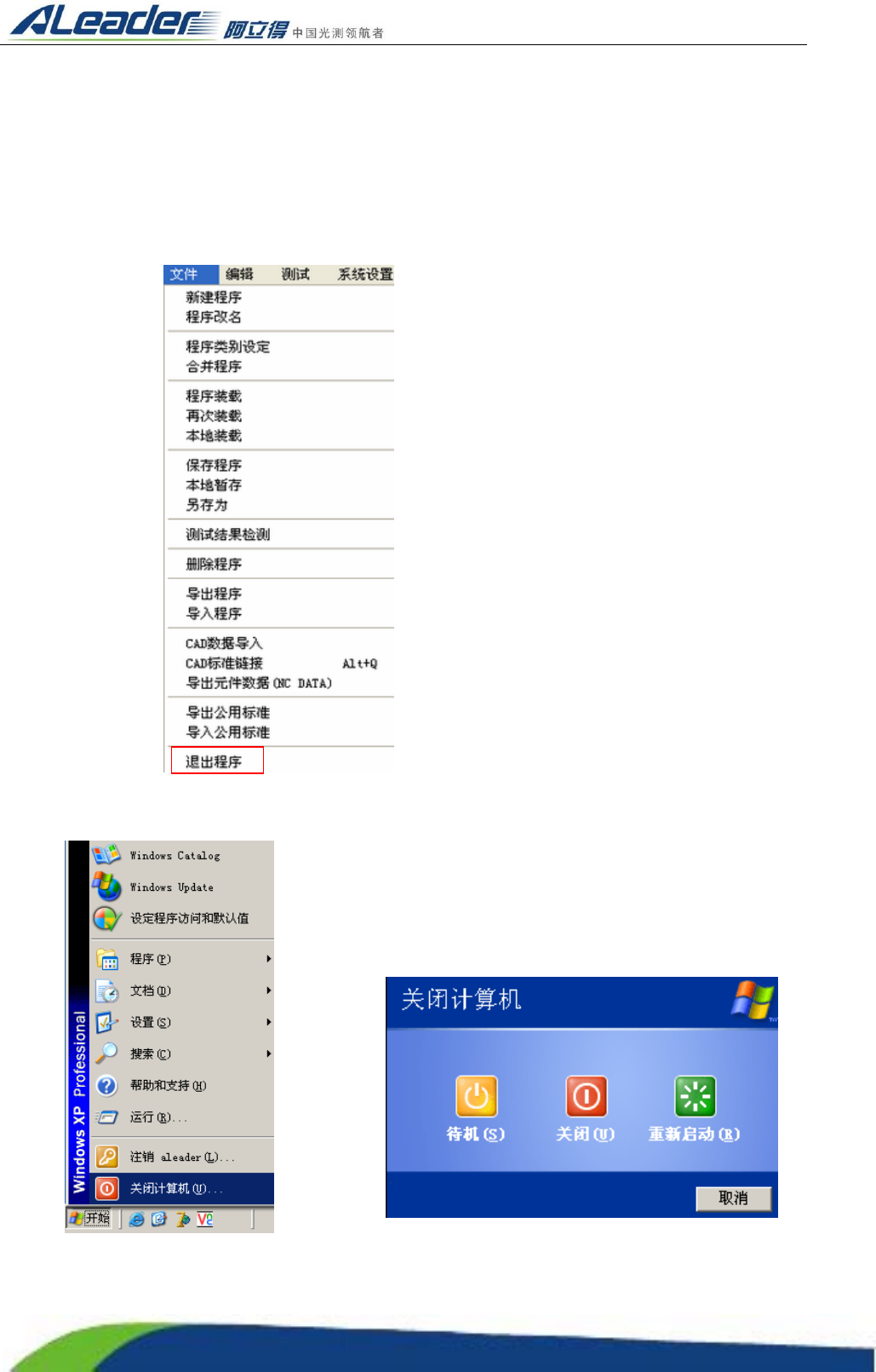 3. 点击操作系统 WinXP 的〔开始〕→〔关机〕,按正常的 Windows 系统关机程序退出。