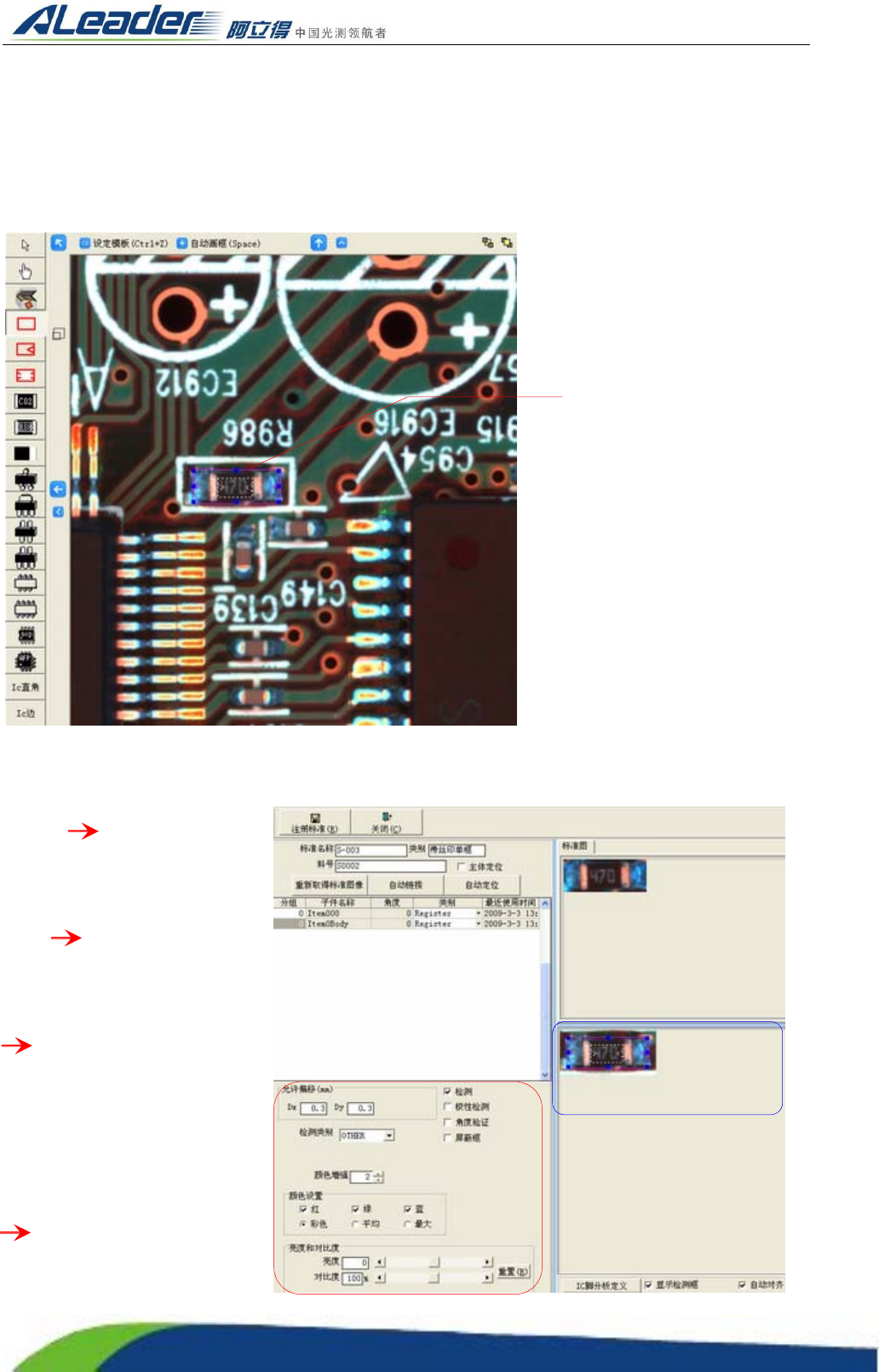 检测过程中起着定位和检测本体好坏及用料正确与否作用;焊点框,在检测中检查焊点的好坏。通常