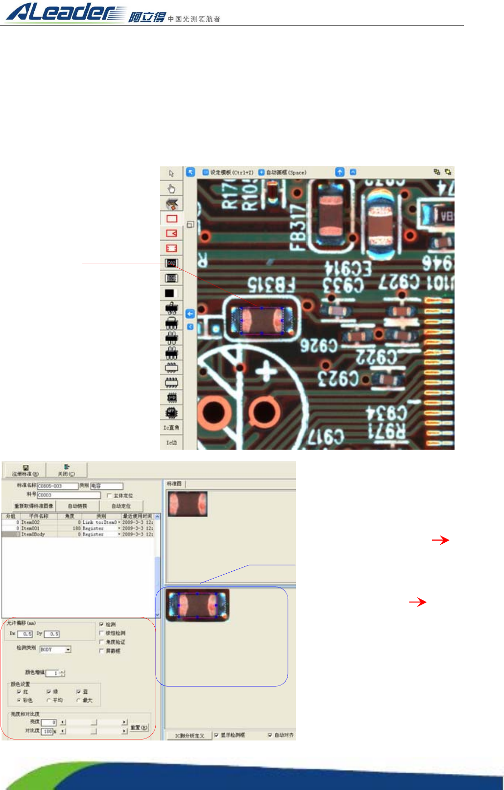 Http:www.aoichina.c om TEL:0769-22620377 2262 0877 FAX:0769-23102060 Page:34 of 11 5 3.3.7.5 电容模块的注册 电容模块一般针对 0603 以上元件(包括 0603 元件) 、锡点较饱满、不具有丝印的元件。电容模 块具有主体框、焊点框(2 个)共三个检测框,中间实线为主体框、两边虚线为锡点框。主体框,在 检测过程中起着定位和检测本体好坏及用料正确与…