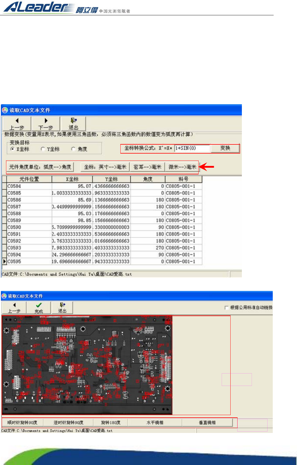 7) 完成:在元件镜像图像调节好后,把 CAD 数据加载到程序中。