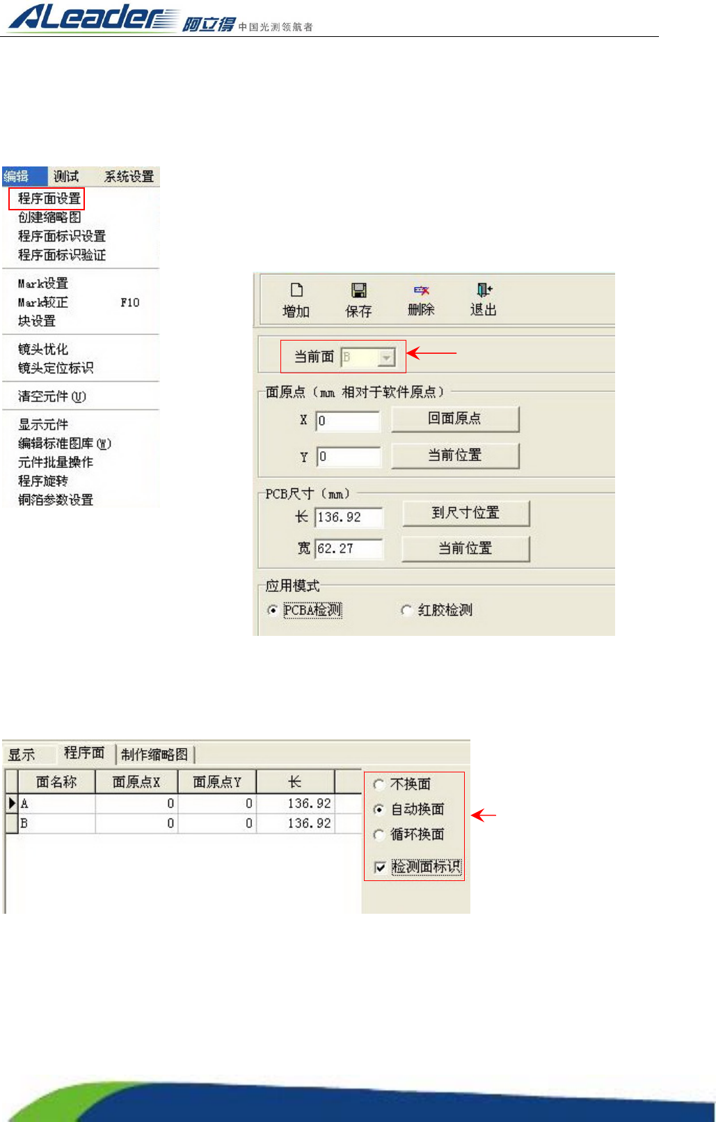 做法:制作好 A 面程序后,选择菜单“编辑”栏下“程序面设置”选项,弹出程序面设置窗口,点击