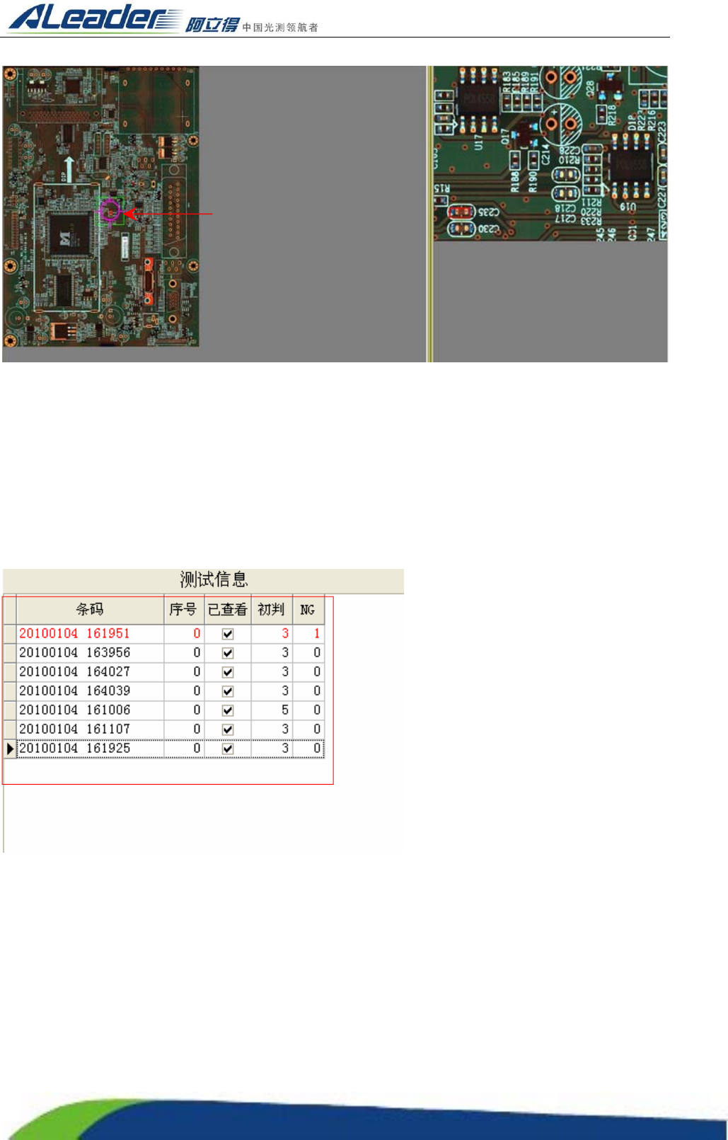打开操作员检测窗口(测试结果检测窗口),检测完一块板有错误时,缺陷图片会自动传送到“测试结