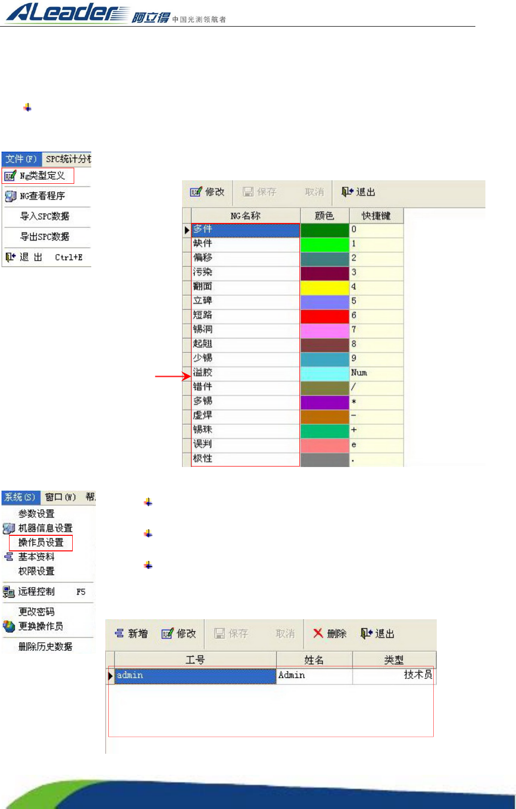 选择菜单“文件”栏下的(NG 类型定义),打开“NG 定义窗口”。