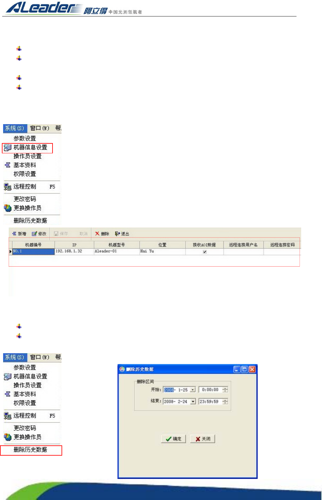 选择菜单“系统”栏下的“删除历史数据”,打开“删除历史数据界面”。