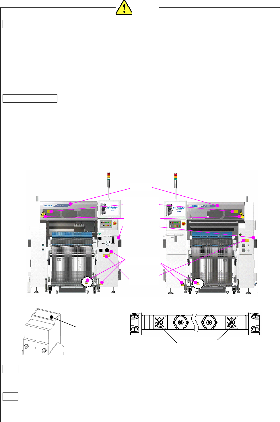 表示在进行 机器操作、保养时,如果当事人、第三者操作错误,或不防止该情况,