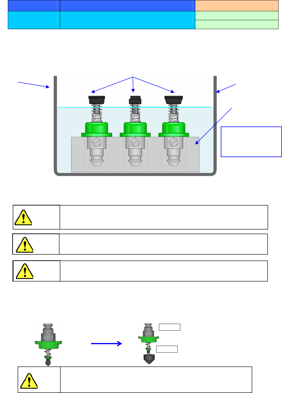 2) 使用超声波清洗器清洗 505~508C 号吸嘴时,为防止用酒精清洗造成吸嘴尖头氨基甲酸乙酯部分剥离,