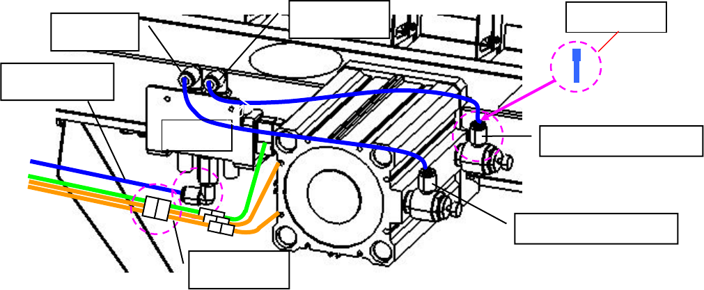 5) 请拔出切带机组合件中气缸速度控制器(空气供给:OPEN)侧的空气管子,插入塞子(Φ6