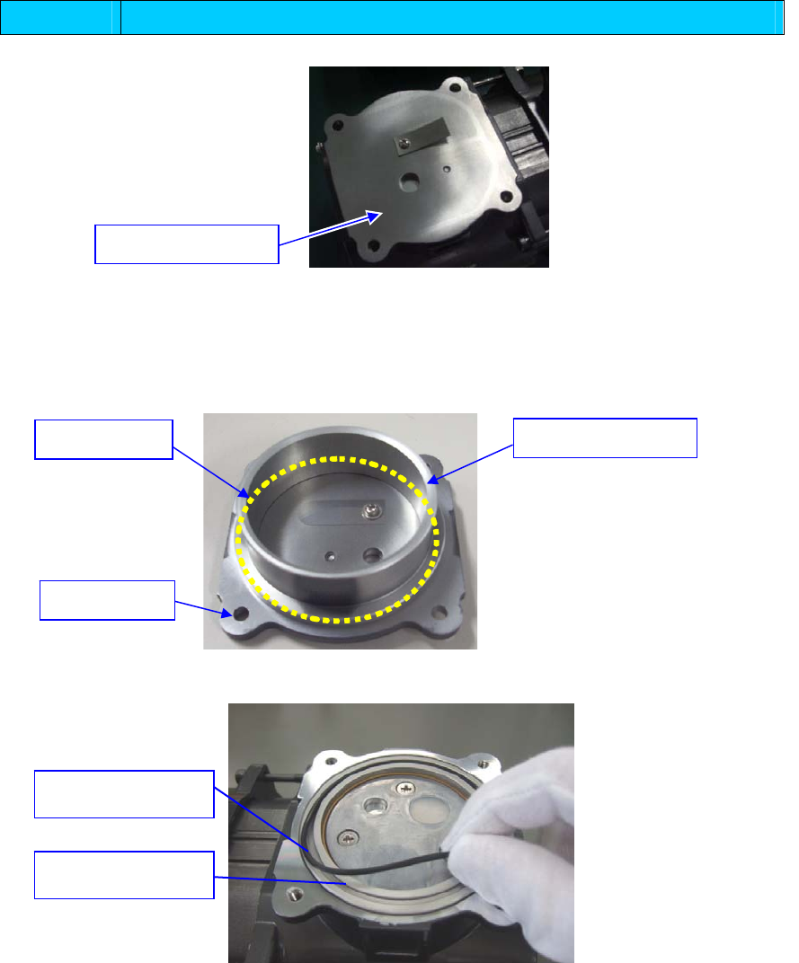 操作手册 I 4-51 更换 更换 O 环 S-67 1) 用与更换密封圈同一要领,卸下泵头护罩和泵头盘。 ※泵头盘与碗形密封气缸之间的O环 S-67 有时会粘连在一起, 遇此情况请抓住泵头盘向上提,碗形密封气缸就会被一起提上来。 之后,再进行剥离作业。 2) 将碗形密封气缸上部的 O 环 S-67 ,换上新的 O 环。 ※请按照密封 圈的更换顺序 ,安装护罩。更 换其它消耗部件 时,请不要关 闭护罩,参照各 部位的更 换步骤操作。 O…