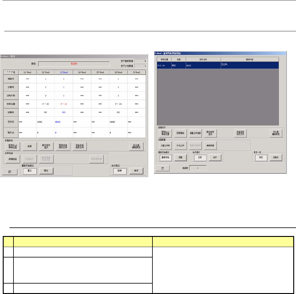 生产程序的各种数据与激光测量的数据不一致时,显示错误画面,装置暂停。