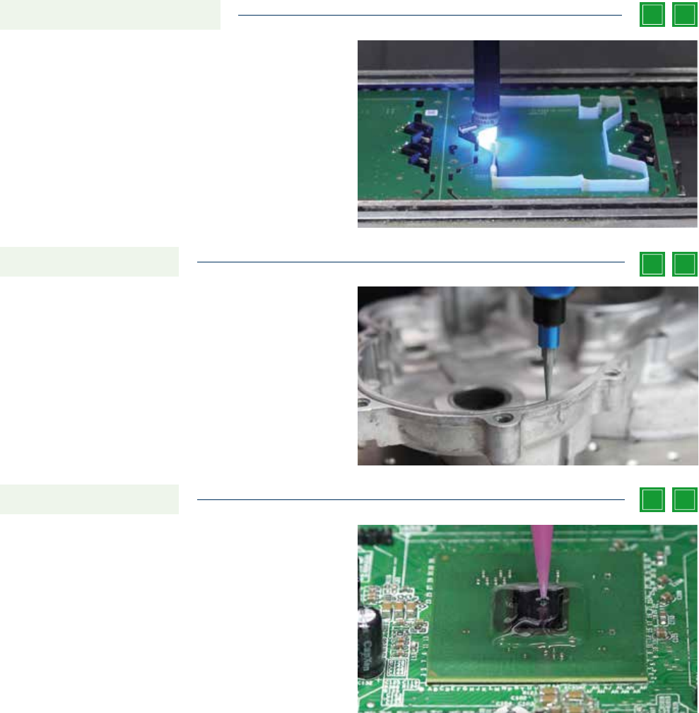 8 More than “just” coating Application possibilities with Protect oXP/XC Dam & Fill allows individual areas to be selectively coated on the circuit board, thereb y efciently pr otect - ing them. Two materials with d…