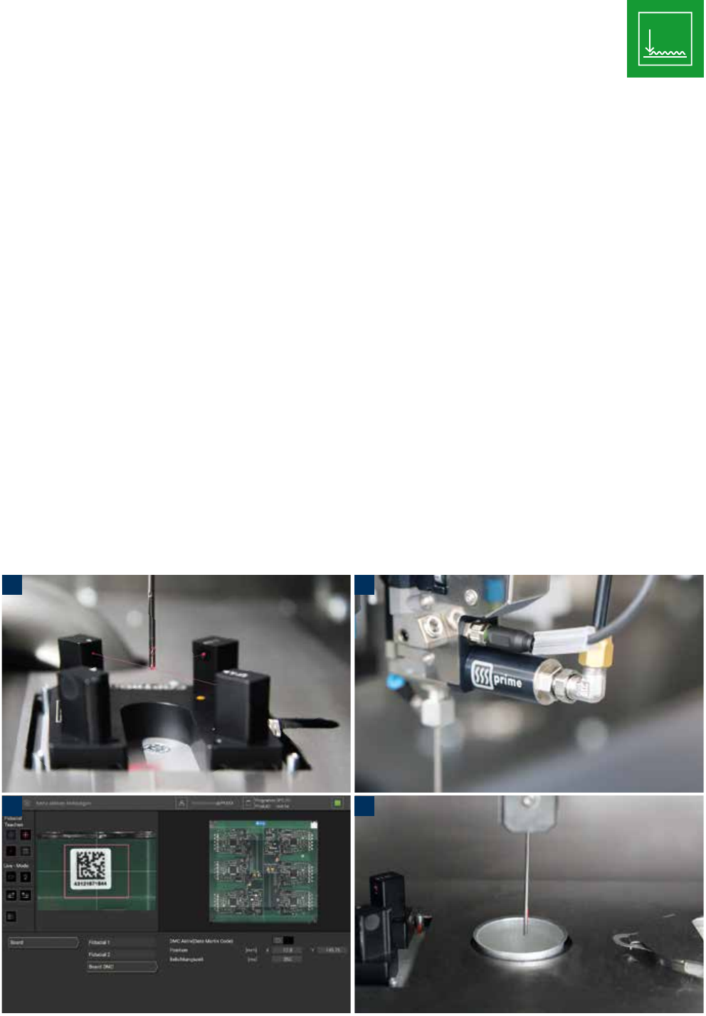 1. Needle measuring cross with auto-correction, 2. Jetter-heating, 3. Fiducial camera (Screen overview), 4. Weighing cell
